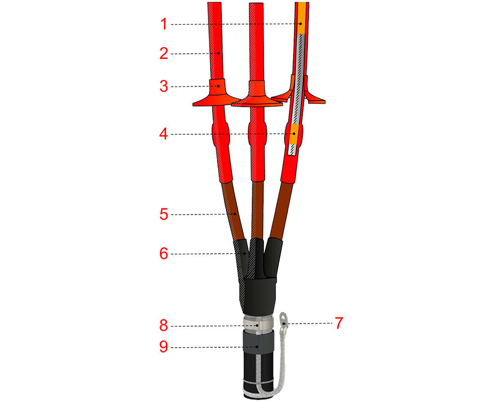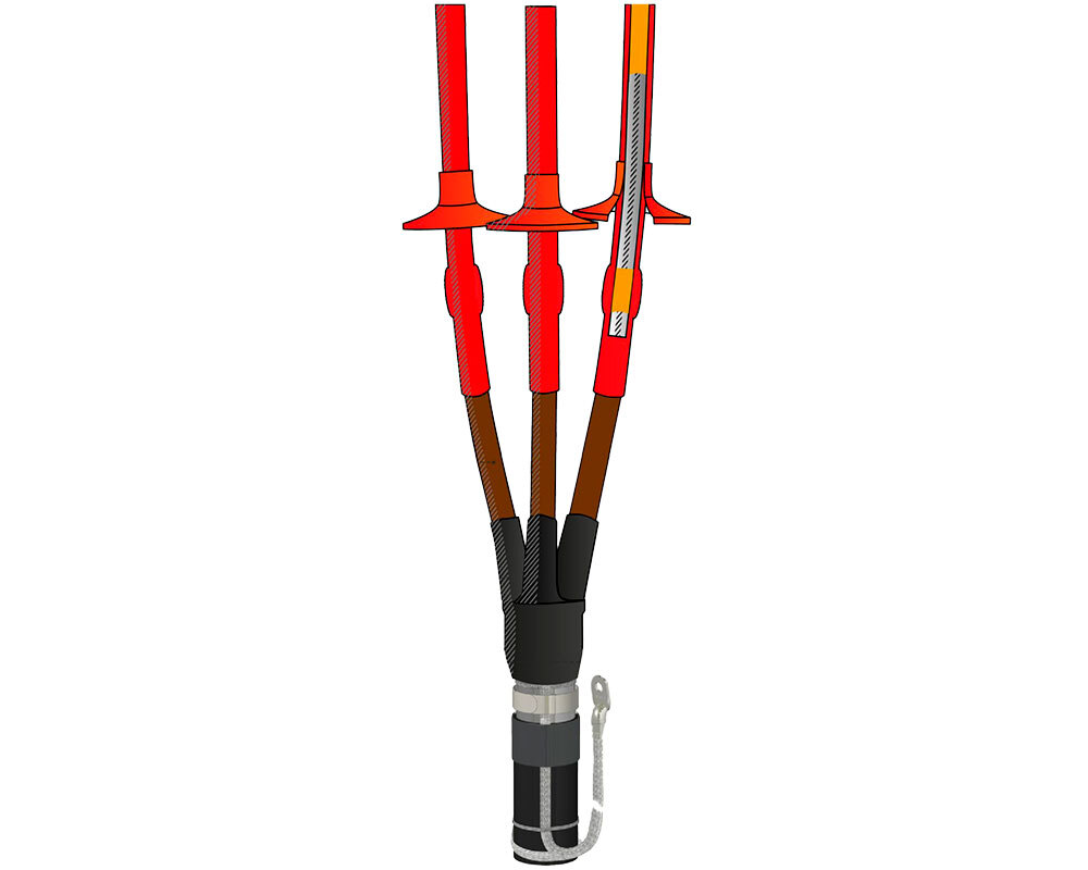 Муфта термоусаживаемая концевая наружной установки для трехжильного кабеля с пластмассовой изоляцией из сшитого полиэтилена с ЛЕНТОЧНЫМ экраном, С БРОНЕЙ, на напряжение до 10 кВ включительно 3ПКНТп-Б-10-70...120-КлЭ (без наконечников)