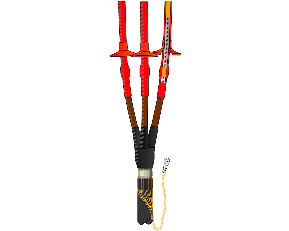 Муфта термоусаживаемая концевая наружной установки для трехжильного кабеля с пластмассовой изоляцией из сшитого полиэтилена с ПРОВОЛОЧНЫМ экраном, С БРОНЕЙ, на напряжение до 10 кВ включительно 3ПКНТп-Б-10-35...50-КПЭ (без наконечников)
